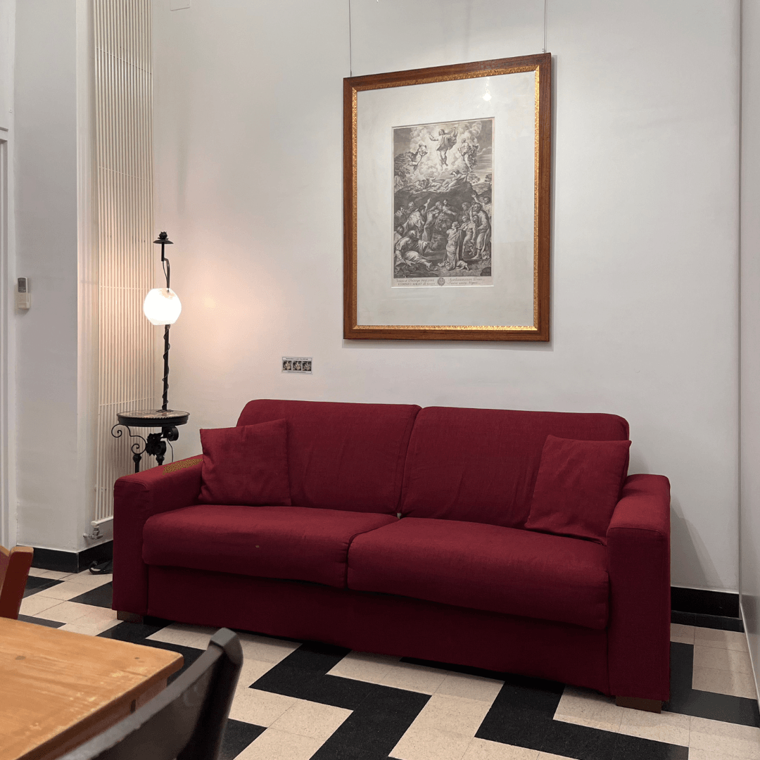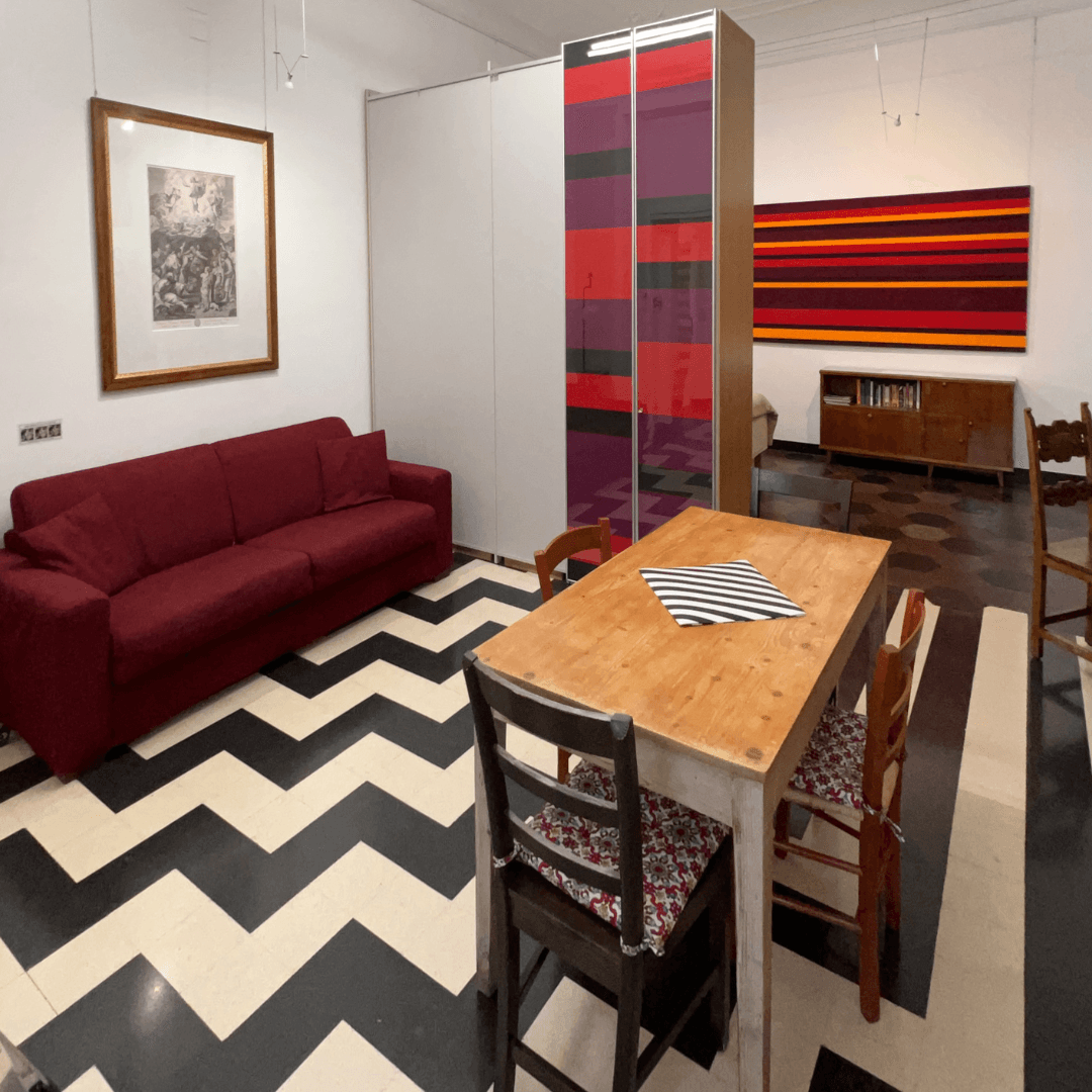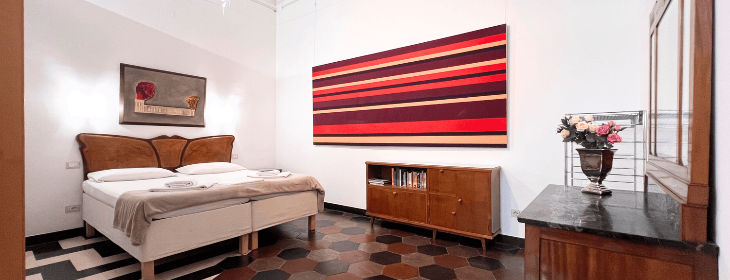 Unbeatable strategic location (Navona-Campo de Fiori), just steps away from most famous monuments and museums. Street lined with typical Roman restaurants and shops, perfect for wandering during Roman evenings. First floor (stairs, no elevator) overlooking a small inner courtyard, making the apartment very quiet. The limited natural light is compensated by a quality lighting system and colorful interior design, rich in details—a perfect blend of old and new.