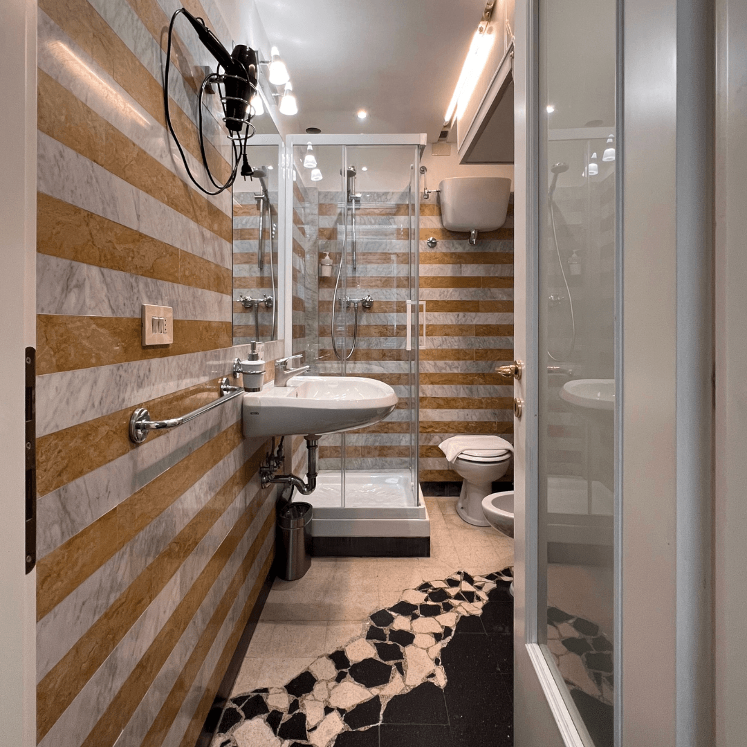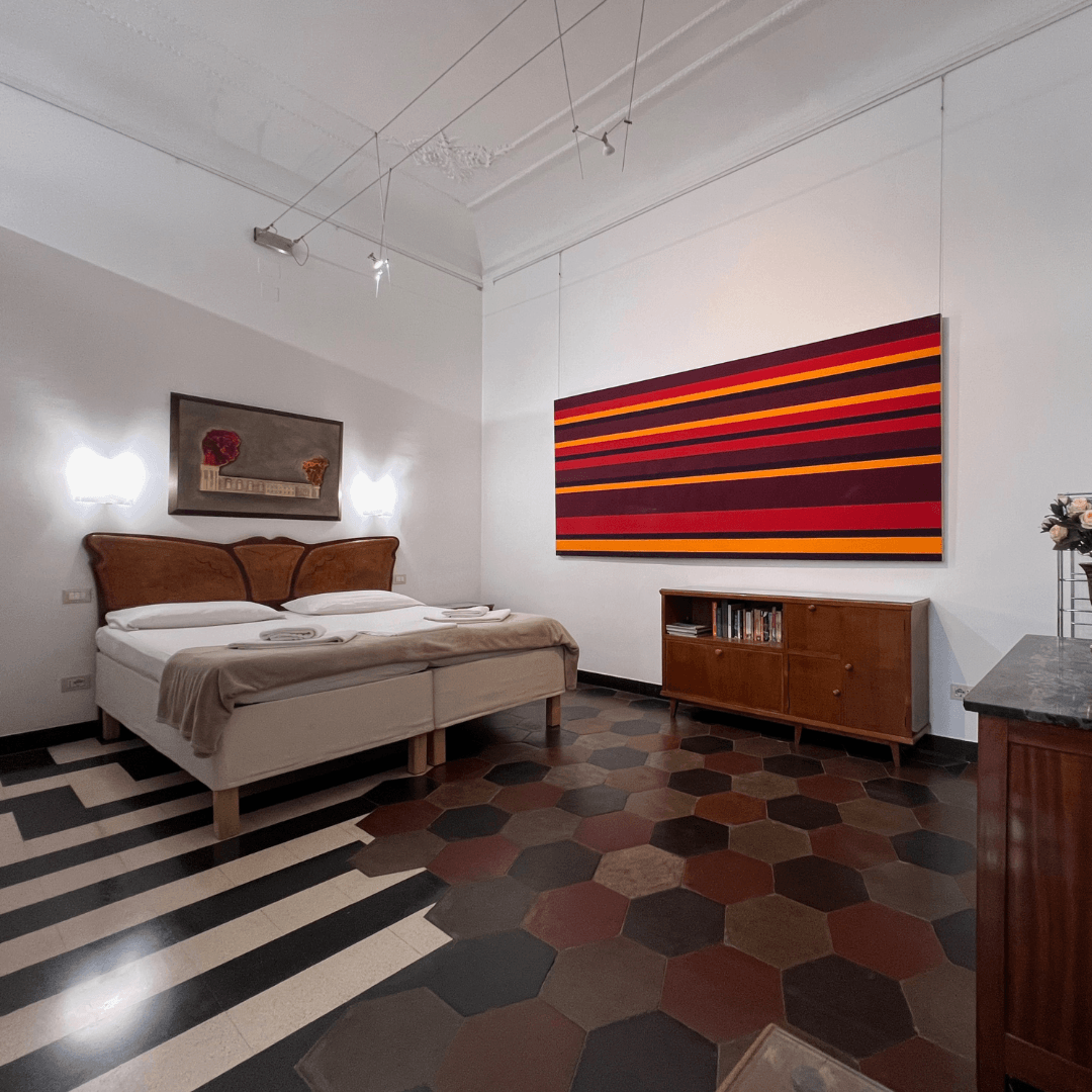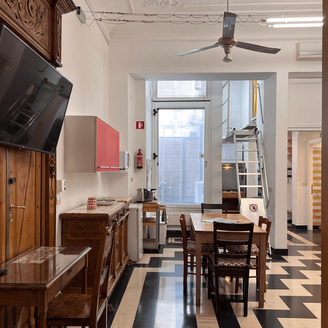 Unbeatable strategic location (Navona-Campo de Fiori), just steps away from most famous monuments and museums. Street lined with typical Roman restaurants and shops, perfect for wandering during Roman evenings. First floor (stairs, no elevator) overlooking a small inner courtyard, making the apartment very quiet. The limited natural light is compensated by a quality lighting system and colorful interior design, rich in details—a perfect blend of old and new.